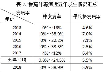 2018年保护地番茄病害的发生趋势和防治预报