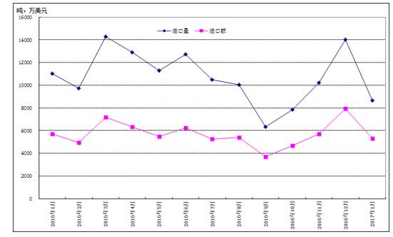1月份,上海市农产品进出口贸易总额减少,贸易逆差扩大:进出口贸易总额为11.24亿美元,环比减7.3%,同比减1.3%。其中,进口额为10.23亿美元,环比减3.6%,同比减1.5%;出口额1.01亿美元,环比减33.1%,同比减1.0%;农产品贸易逆差为9.22亿美元,环比增1.3%,同比减1.8%。