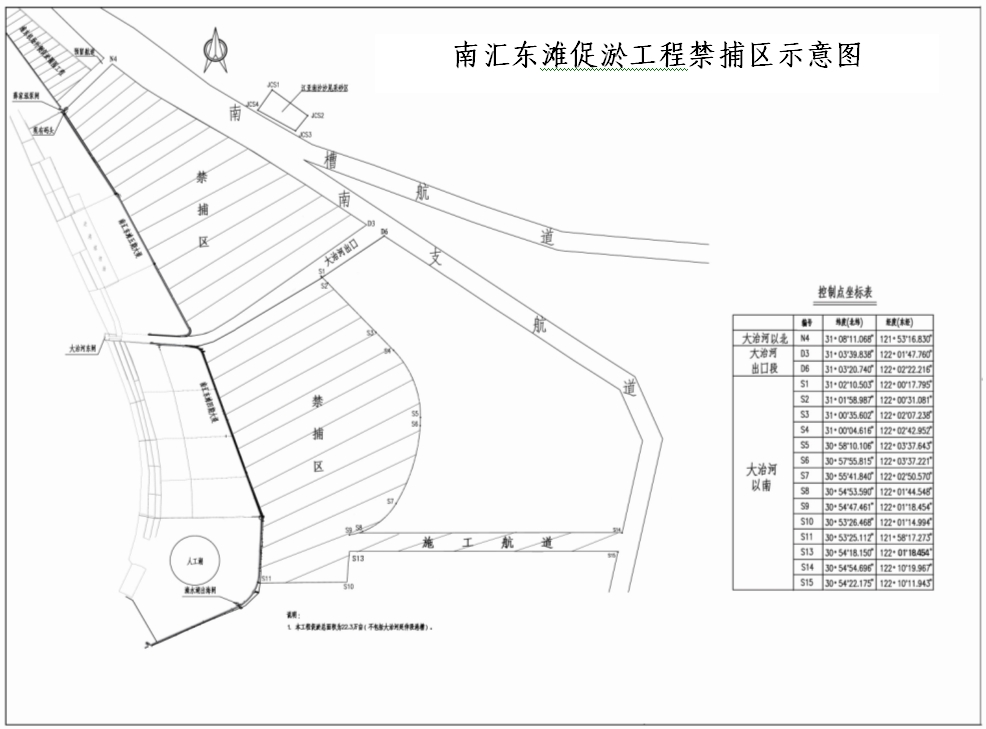 关于对浦东新区南汇东滩促淤圈围工程禁渔区域的公示