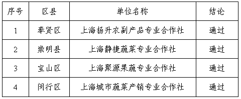 现将考核验收结果予以公示。公示时间:2014年12月4日至12月10日。如对公示内容有不同意见的,可在公示期内向上海市农业委员会蔬菜办公室反映。