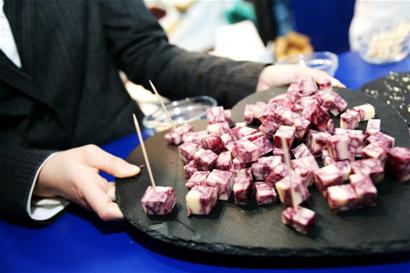 在隔壁的威尔士食品与饮品展区,来自威尔士的负责人正在展示一款售价每升32元的Daioni有机牛奶。记者试喝上一口,淡淡的,回味起来,却是满口的奶香。威尔士人太热情,草莓味、香蕉味、巧克力味……一杯杯下肚,立马就饱了。“你看,牛奶的包装盒上贴着中国有机食品认证的标识。”公司创始人LaurenceHarris趁大伙喝奶的当口,解释说,“中国对进口奶的管控十分严格,许多进口牛奶虽在当地被认为是有机的,但进入中国还得重新认证。目前,我们是唯一一家拥有这项认证的英国乳制品企业。”