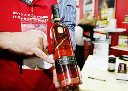 在威尔士展区,威尔士人拿出了一种极为“土豪”的PENDERYN黄金酒,拿着瓶子晃一晃,里面有许多金光闪闪的薄片。生怕你喝不惯,特别配了小瓶装外加一小瓶的果酱作为组合,整套售价1000元左右,虽然价格不菲,但是喝黄金这件事,想想也是醉了。“黄金能喝吗?”不少观众问。“当然,中国的《本草纲目》中就有记载,黄金打成金箔入药,有安神的疗效,有益身心啊。”展柜前的老外突然冒出一句流利的中文。