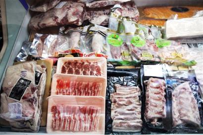 图片说明:海博香港万安的专柜上,肉成了主角。