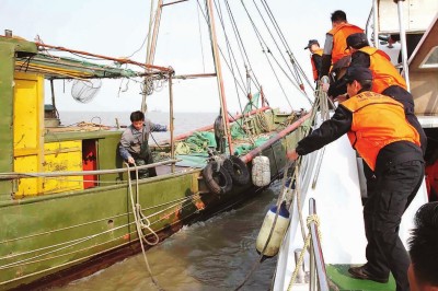 “三月江刀”肉肥味美,无论价格再贵,也一直是老饕们的最爱。昨天,上海海警支队在长江口横沙通道附近水域开展“加强刀鱼捕捞期辖区治安整治”专项行动,确保刀鱼捕捞高峰期间的治安稳定。