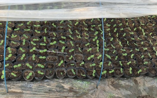 眼下,第一批哈密瓜种子播下已有月余,到了移栽时节,大棚里的各品种瓜苗长势十分喜人。马老师揭开薄膜的一角,略打量了一排排、一穴穴秧苗,就立刻认出了“自己的孩子”:虽然仅仅占了两排位置,但这两排的秧苗叶子要更加壮实,个头也更大。
