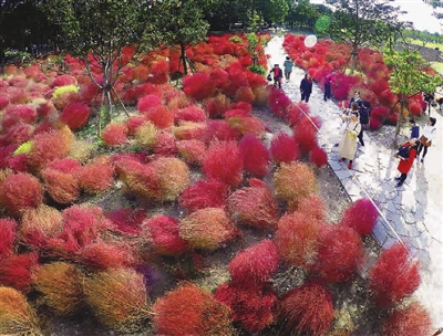 市绿化市容局透露,上海现已形成“口袋公园—社区公园—地区公园”三级公园绿地组成的城市公园体系,城市公园数量从2012年的157座增加至217座,预计到2020年将达到300座。而从2011年起,本市首批试点35座公园延长开放时间,至今年已达到133座。其中44家全天开放,76家全年延长开放。到深秋季节,“出家门即可赏彩林”已成为很多上海市民的常态。