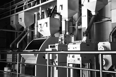 ■全封闭流水线的稻谷脱粒过程(周艳青 摄)