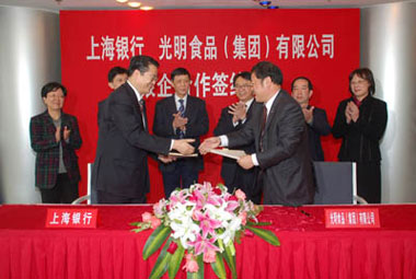 3月8日,光明食品集团和上海银行在上海举行了银企合作签约仪式