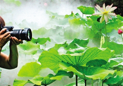 图为古猗园大草坪旁一荷花池内,时而升腾的袅袅轻雾似梦幻一般,缓缓弥散于荷塘上空,宛如一幅月笼轻纱、浓淡相宜的水墨画,营造出一份雾里看花的朦胧美,让取景的“采莲人”频频按动快门,抓拍下这令人怦然心动的美妙瞬间。
