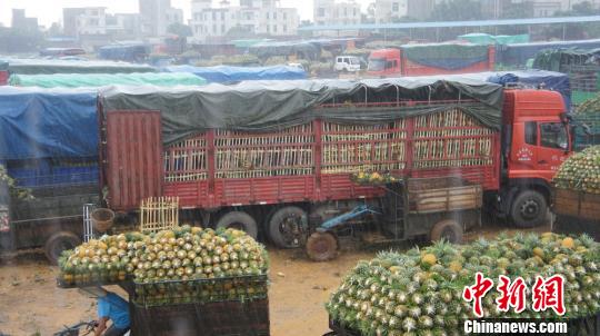 27日中午,记者在有“中国菠萝第一镇”美誉的徐闻县曲界镇菠萝交易市场看到,尽管场内车水马龙,但菠萝交易并不活跃,与常态下的这个中国最大菠萝交易市场应有的热闹相去甚远。