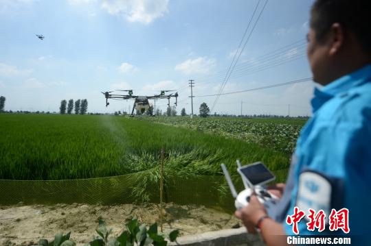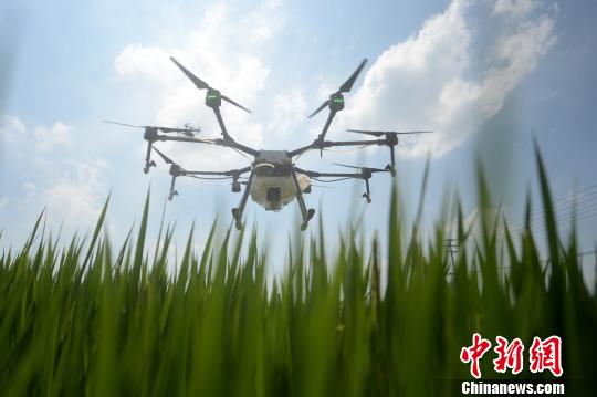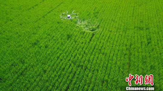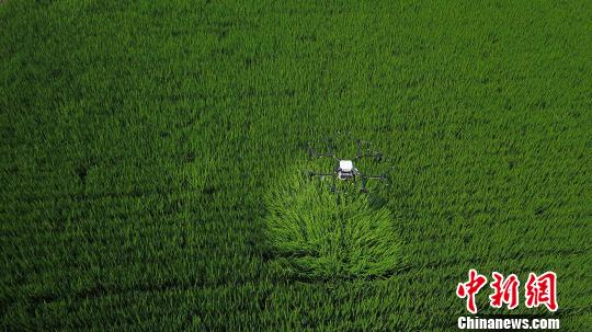 处暑到农事忙 农用“无人机”在稻田间喷洒农药