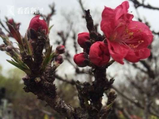今天,位于浦东惠南镇的南汇桃花村正式开门迎客。由于之前雨水较多,气温回暖乏力,只有少数桃花率先吐蕊。星星点点、含苞待放。桃花含羞,倒也别有风情。上海桃研究所农艺师介绍,预测今年早花品种的初花期在23号到27号,晚花品种在28号到4月初,而盛花期要等清明节以后。