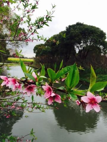 柳条垂下绿丝绦,桃花举出新蓓蕾。临水照花,蜂飞蝶舞,又是一年春好处。